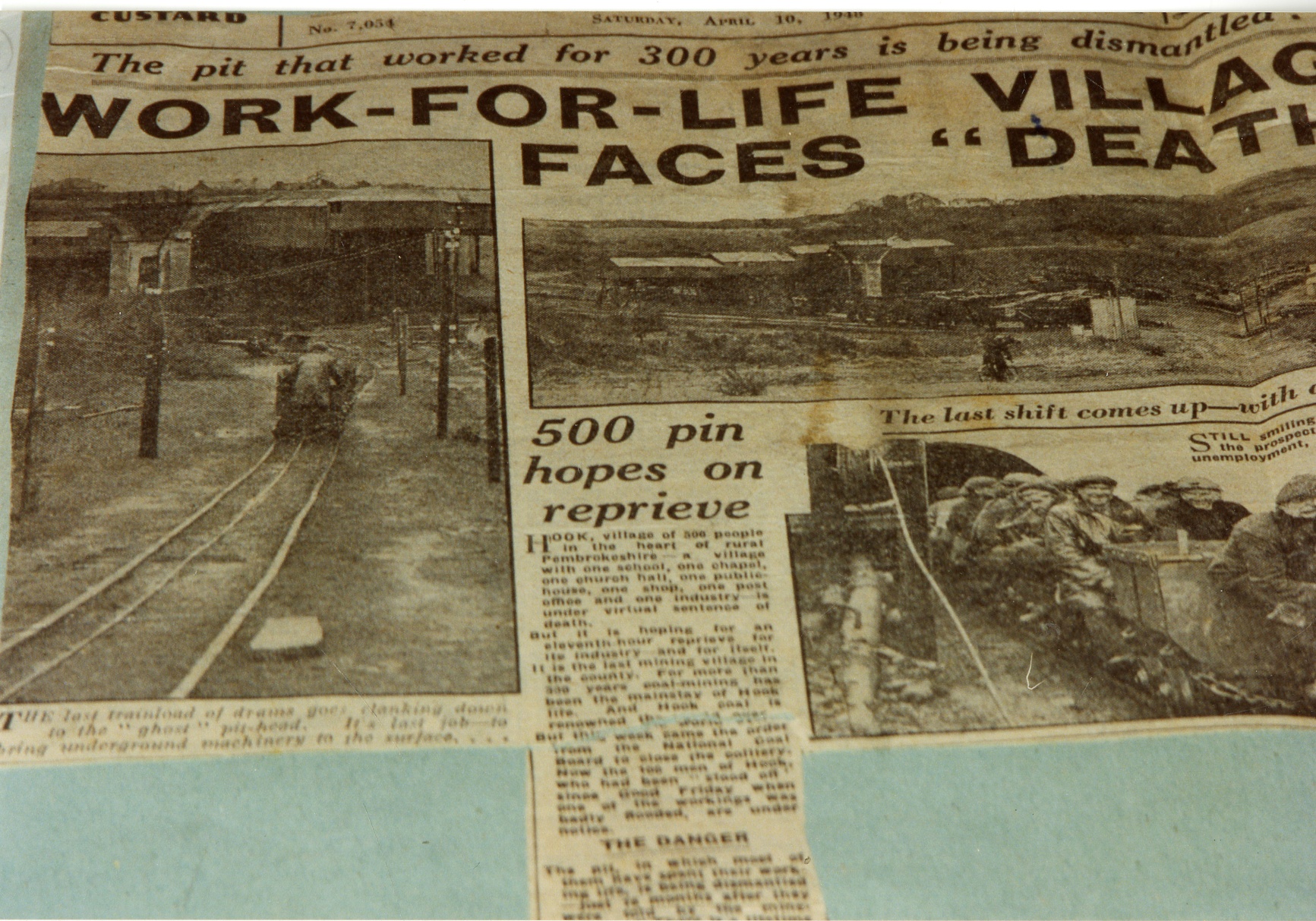 Description: Coloured photograph of information from a newspaper relating to Hook Colliery closure.