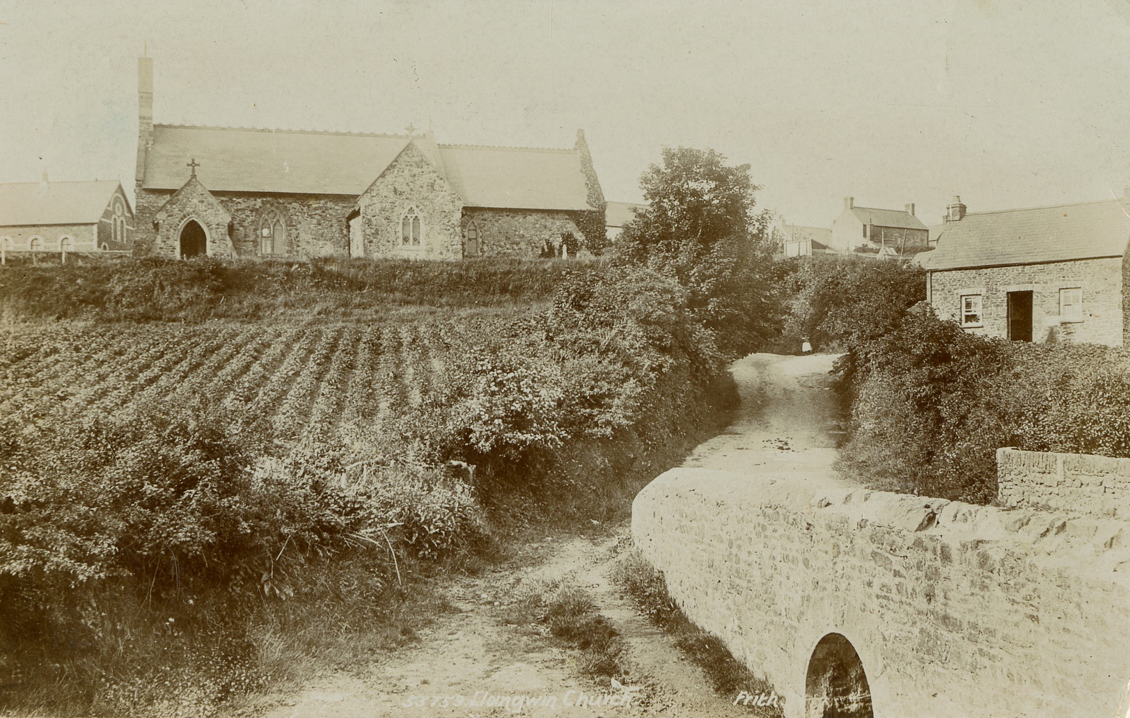Title: Black and white photograph of St Jerome’s Church Llangwm Haverfordwest.