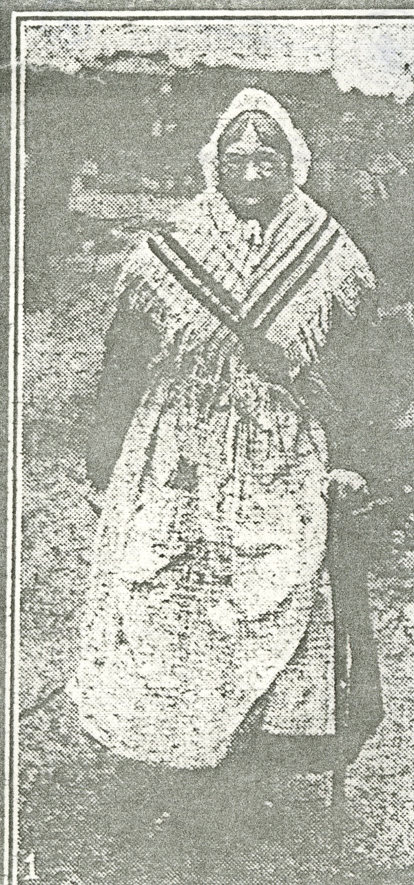 Description: Cutting of a Mary Palmer dressed in traditional costume.