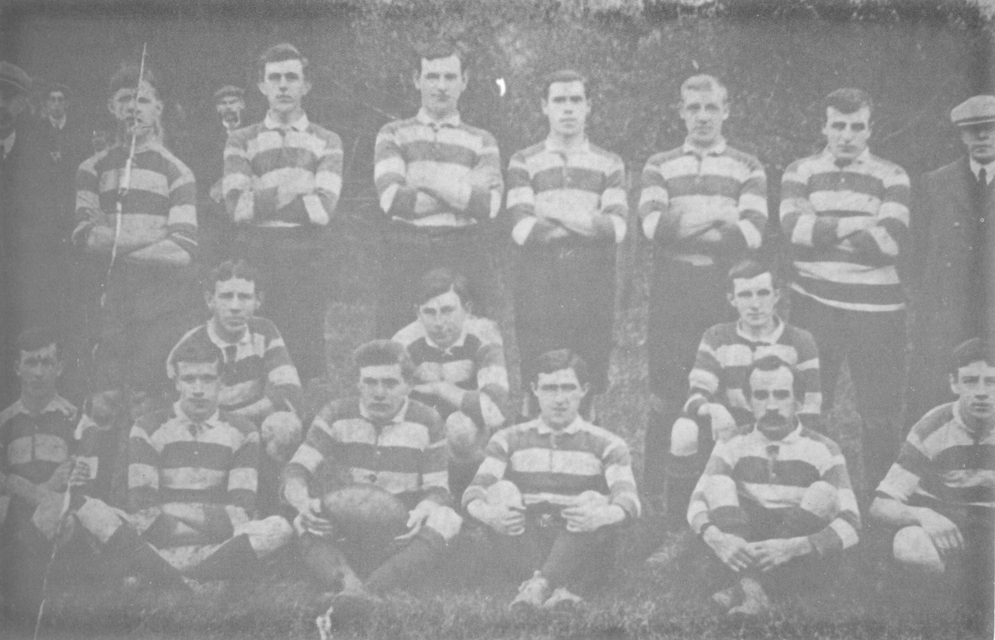 (Third row) W. Thomas, R. Fuller, R. Palmer, G. Thomas, Ald. J. John, J.P. (President), D. Lewis (Captain), R.V. Palmer (Chairman), T. Kiff, G. Vaughan, O.G. John