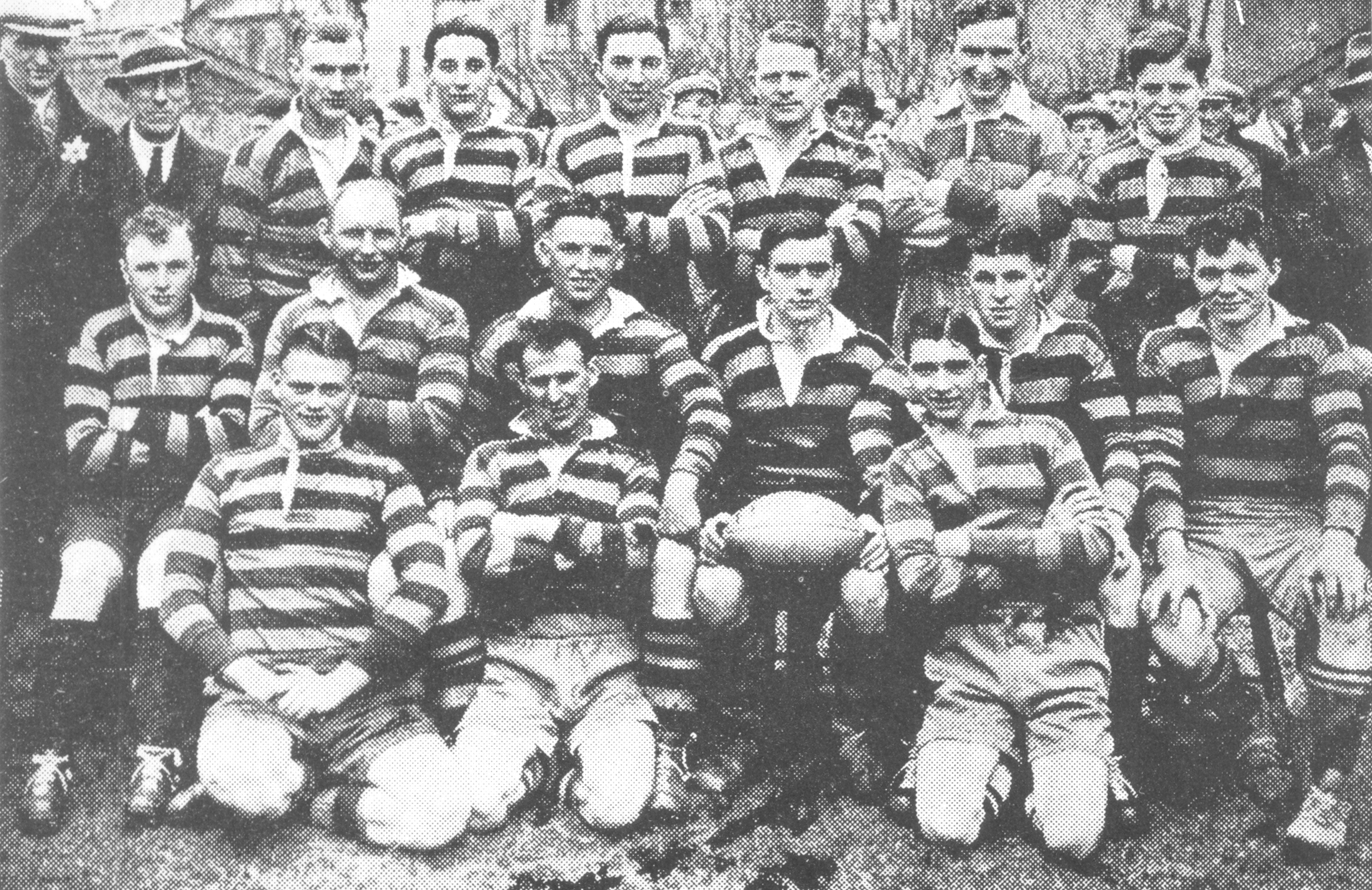 (Second row) G. Davies, D. Jones, B. Saies (Captain), W. Gettings, P. Esmond, C. Griffiths (Linesman), J. Roberts (Linesman),