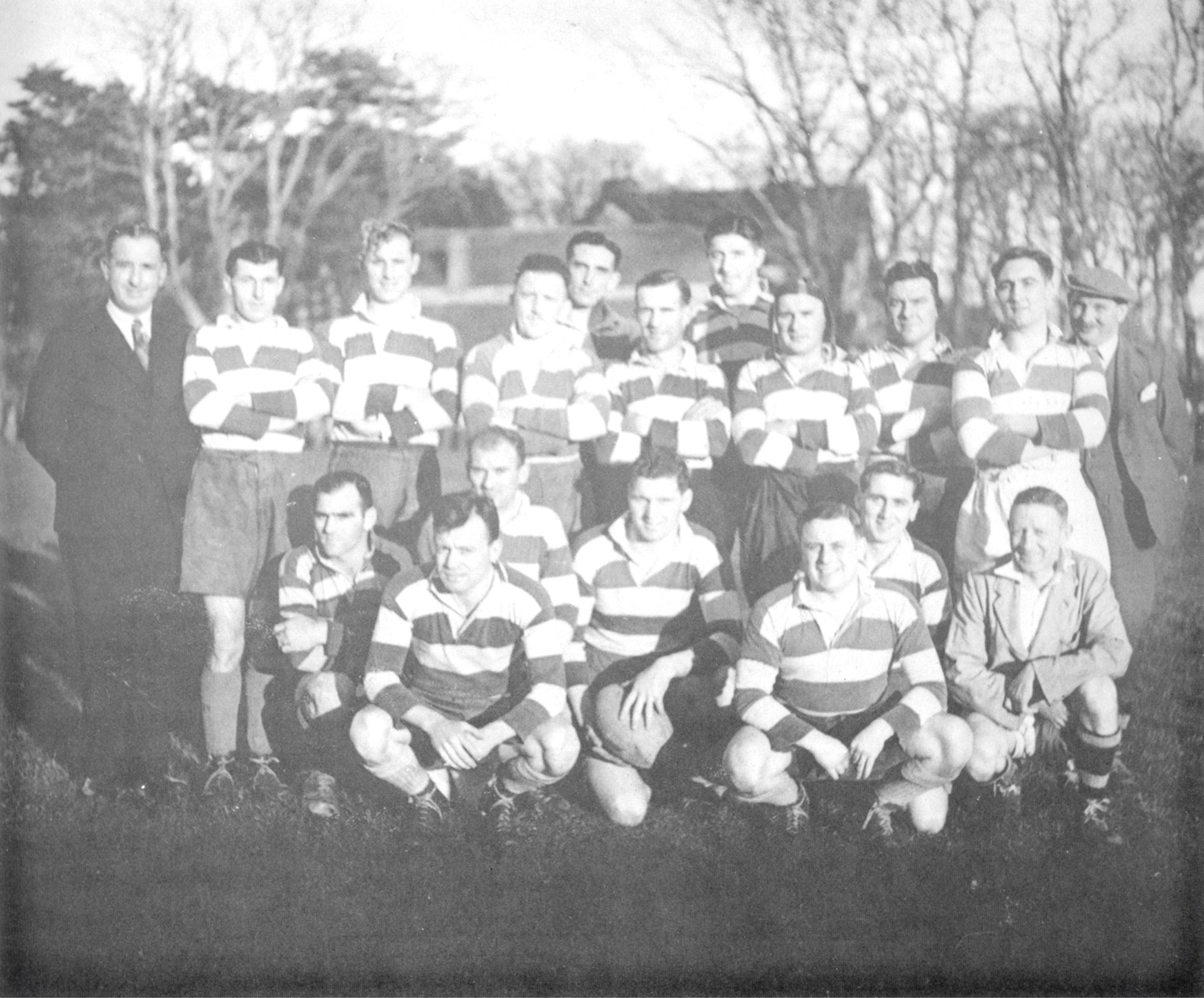 (Second row) H. Brock, K. Adams (Vice-Captain), M. Hughes (Captain), J.V. Hayes, P. Esmond