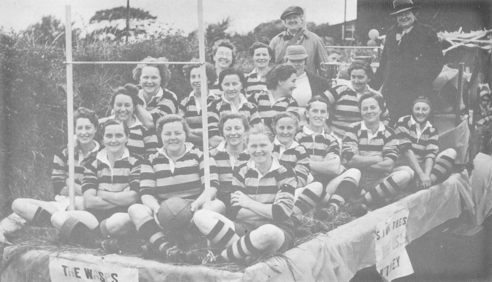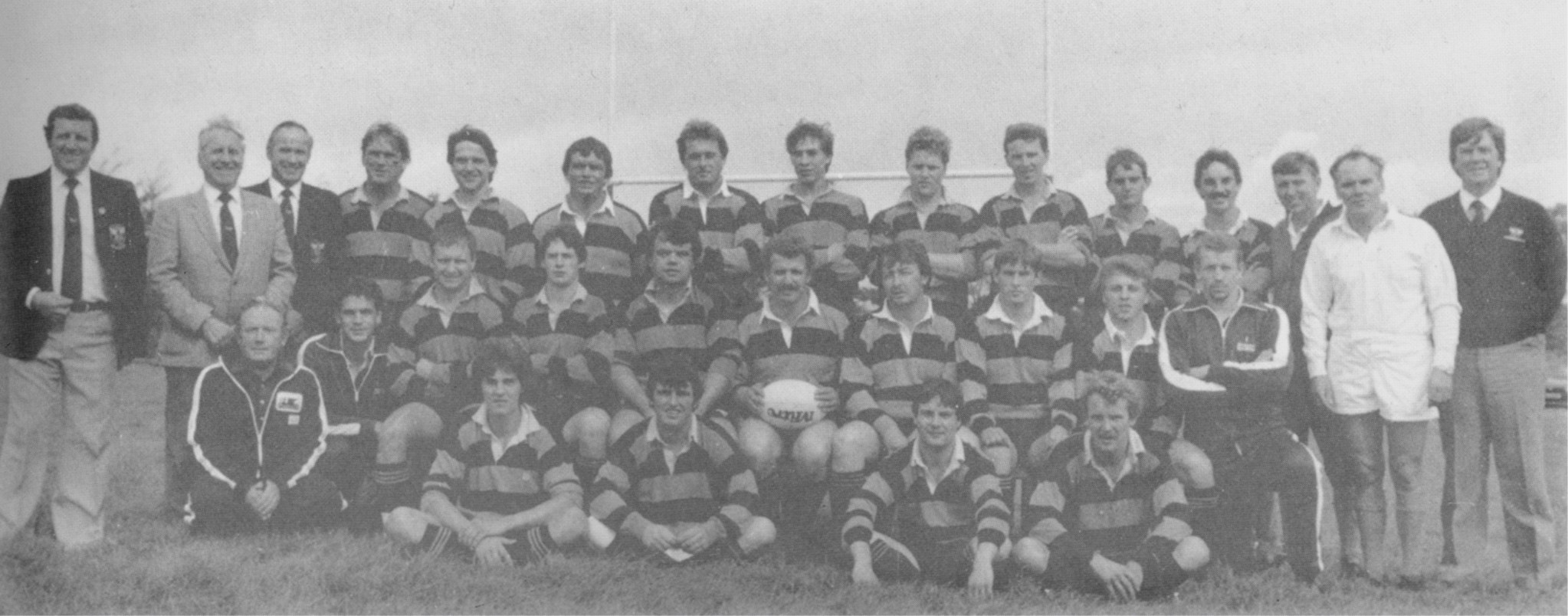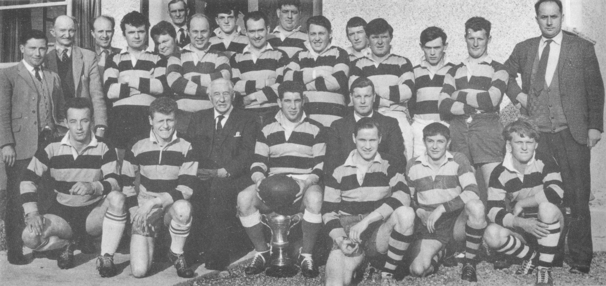 (Front row) Bill Gibbs (Coach), George Thomas (President), Glyn Davies (Chairman), Michael Roberts (Hon. Secretary),