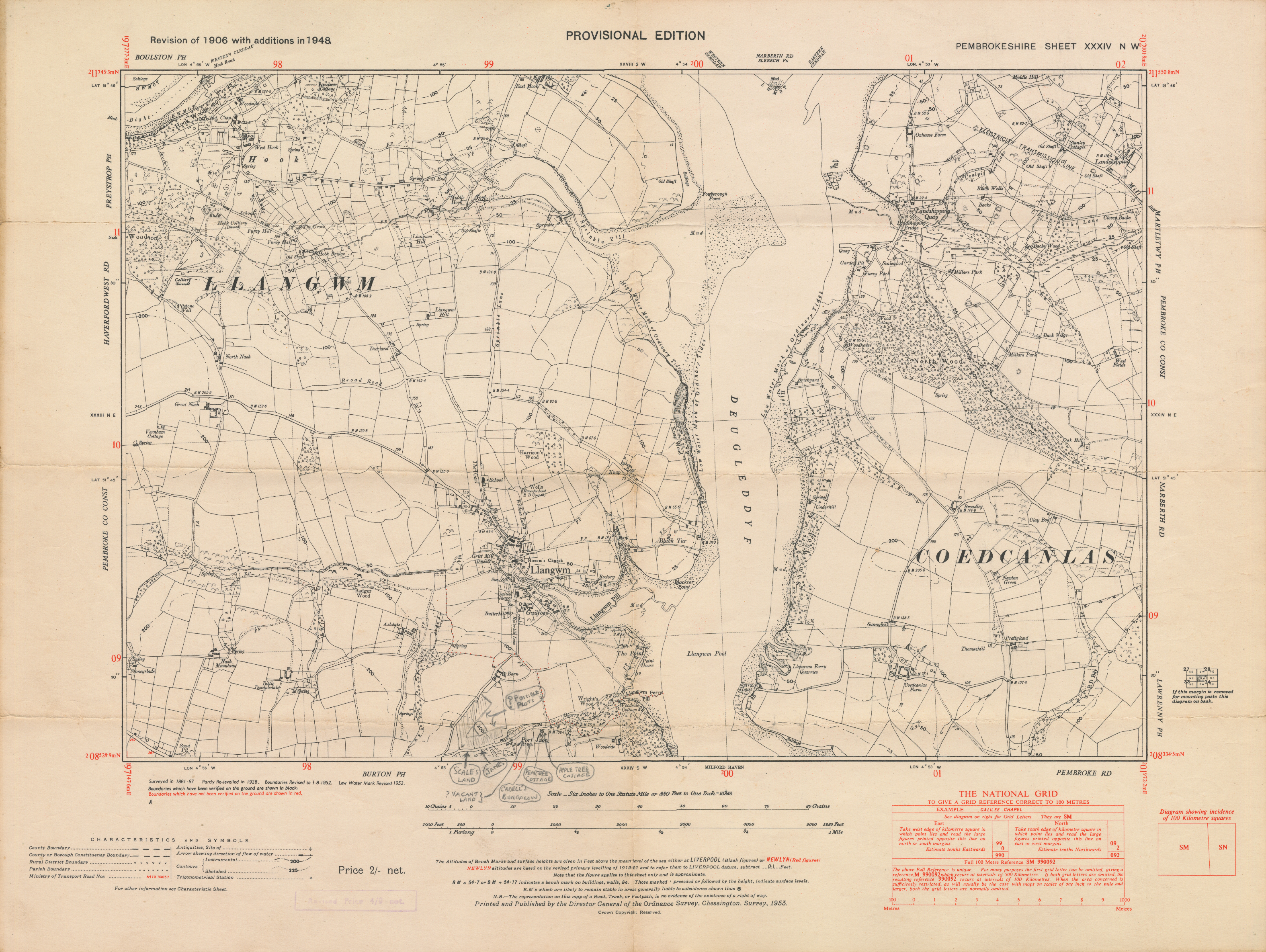Ordnance Survey Map of Llangwm and Surrounding Area - Provisional Edition, 1952