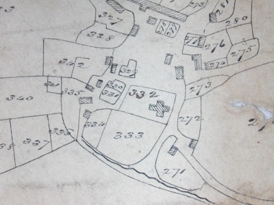 The map and apportionment documents for Llangwm and Freystrop are extremely informative, giving details of residents and owners of land, field boundaries, use of land and assessed value of rents. This is a section of the map showing the area around the centre of Llangwm. The map and documents are available to view at Pembrokeshire Archives, Ref No D-RTM/13/39.