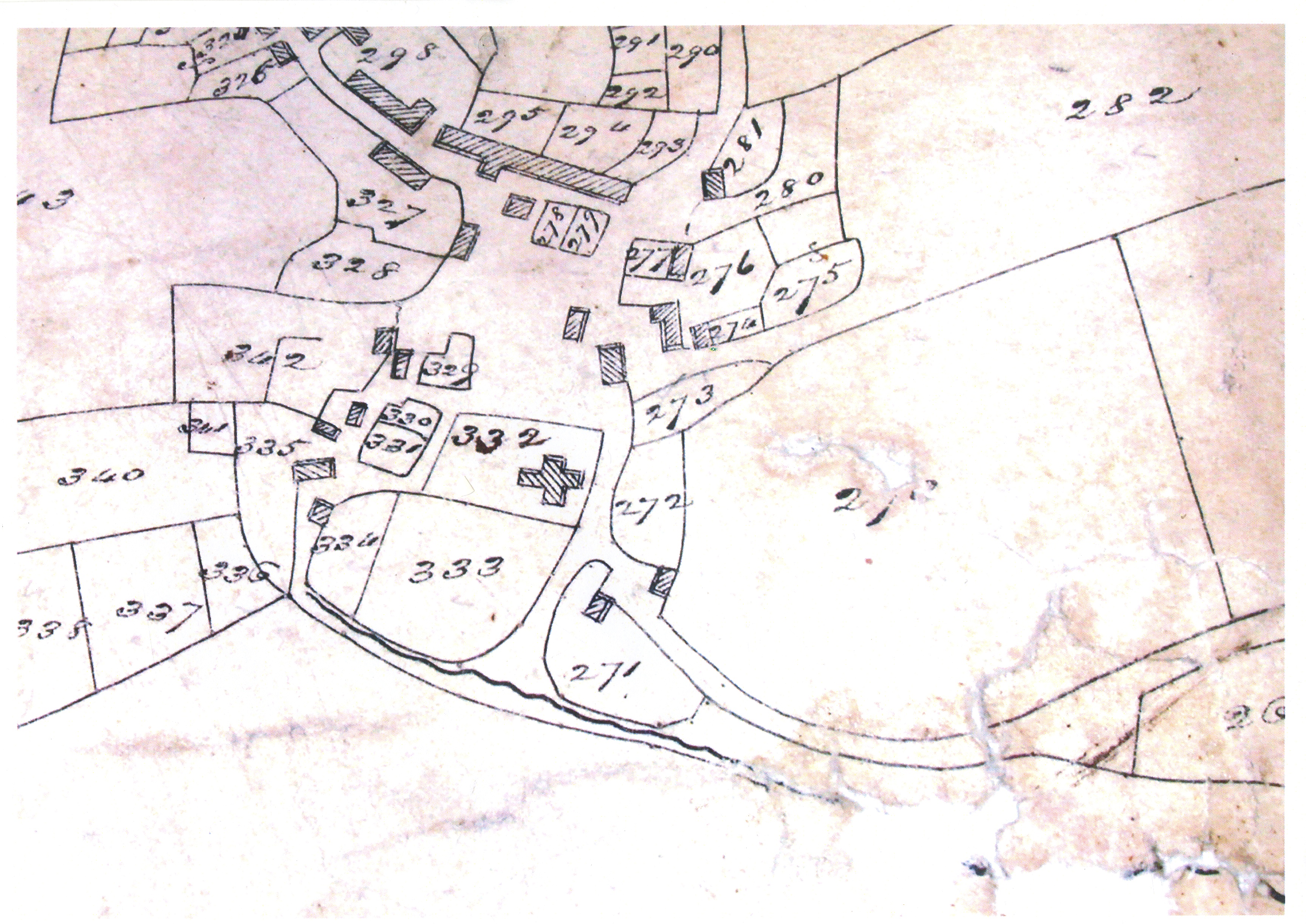 Description: Copy taken from the Llangwm Tithe map showing part of the village including the area around the Church. 1 item: