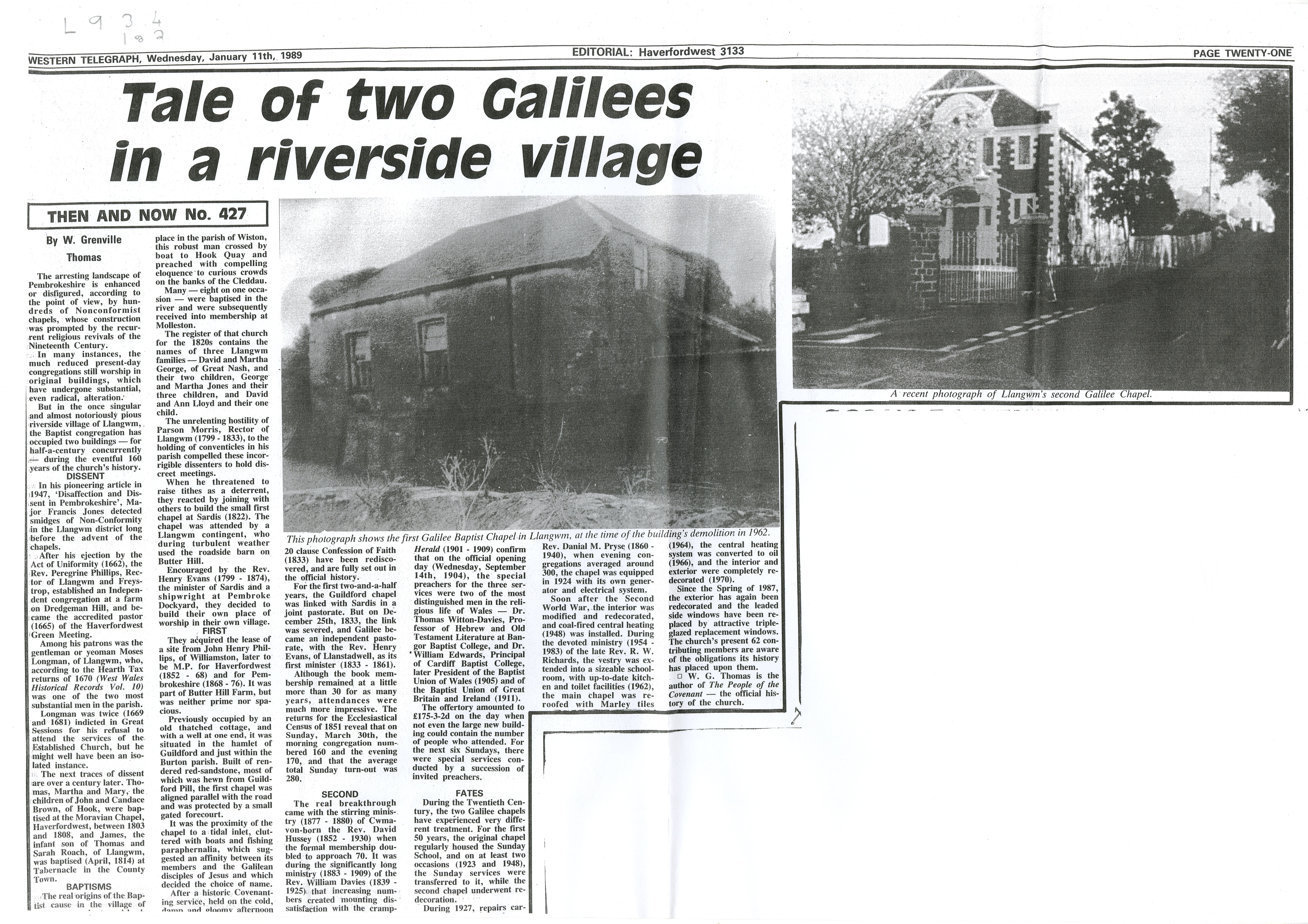 Title: Copy of Western Telegraph Then and Now article 427 'Tale of Two Galilees'