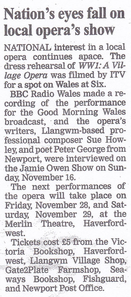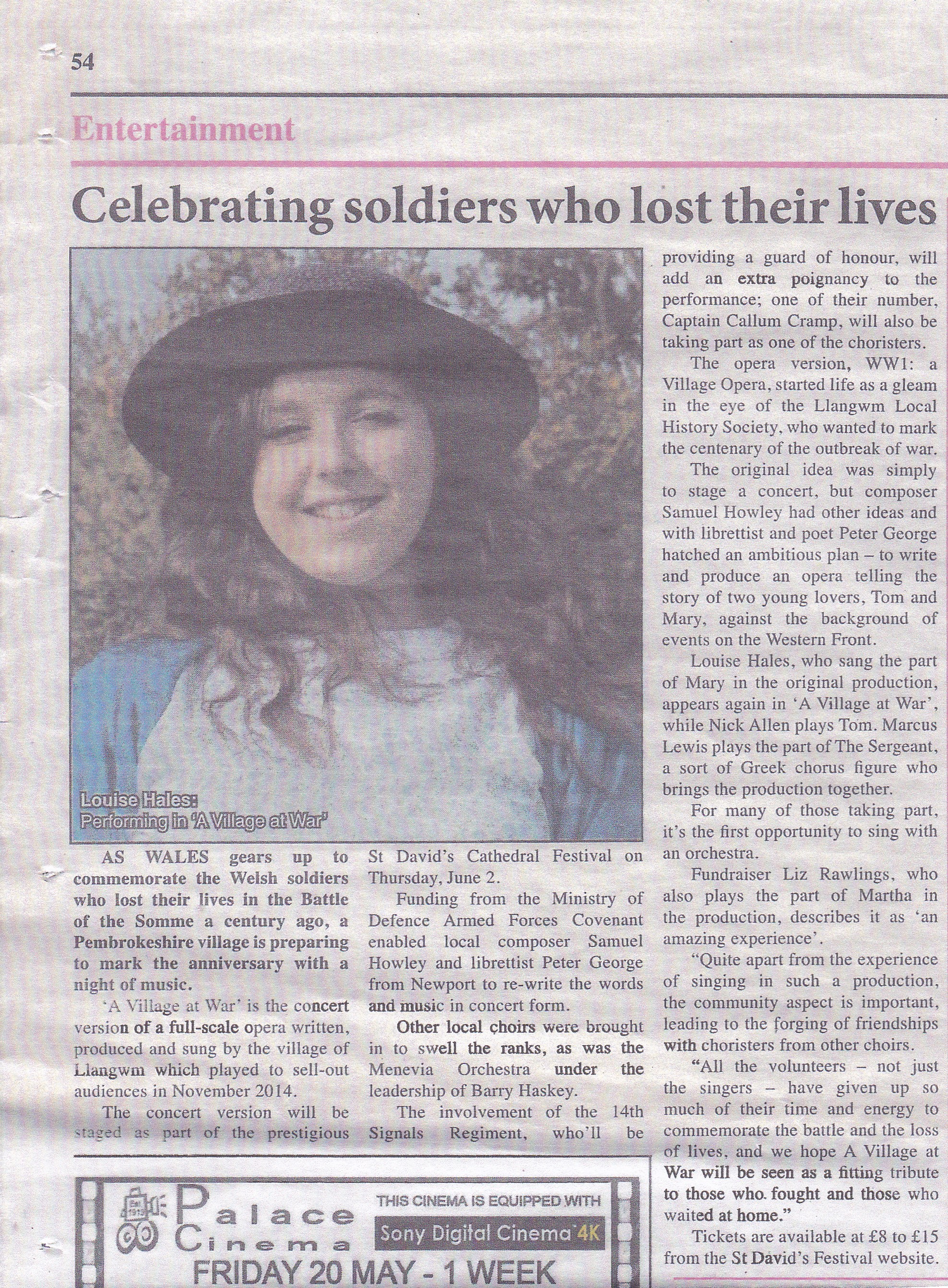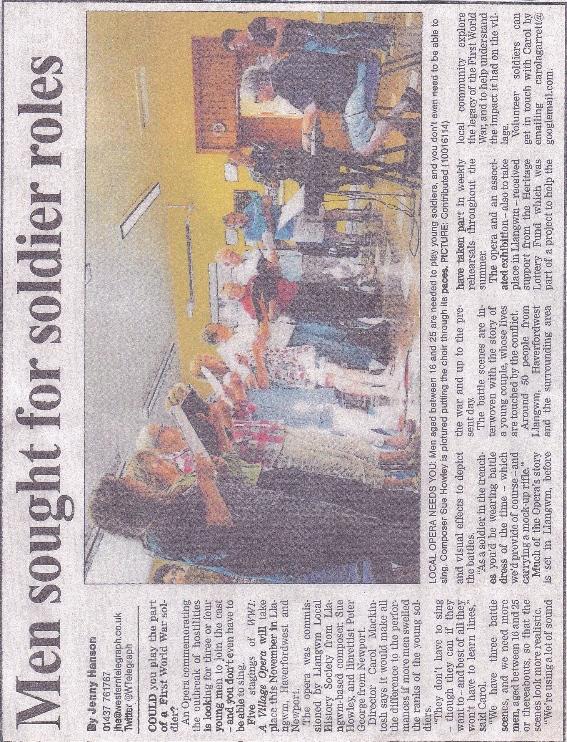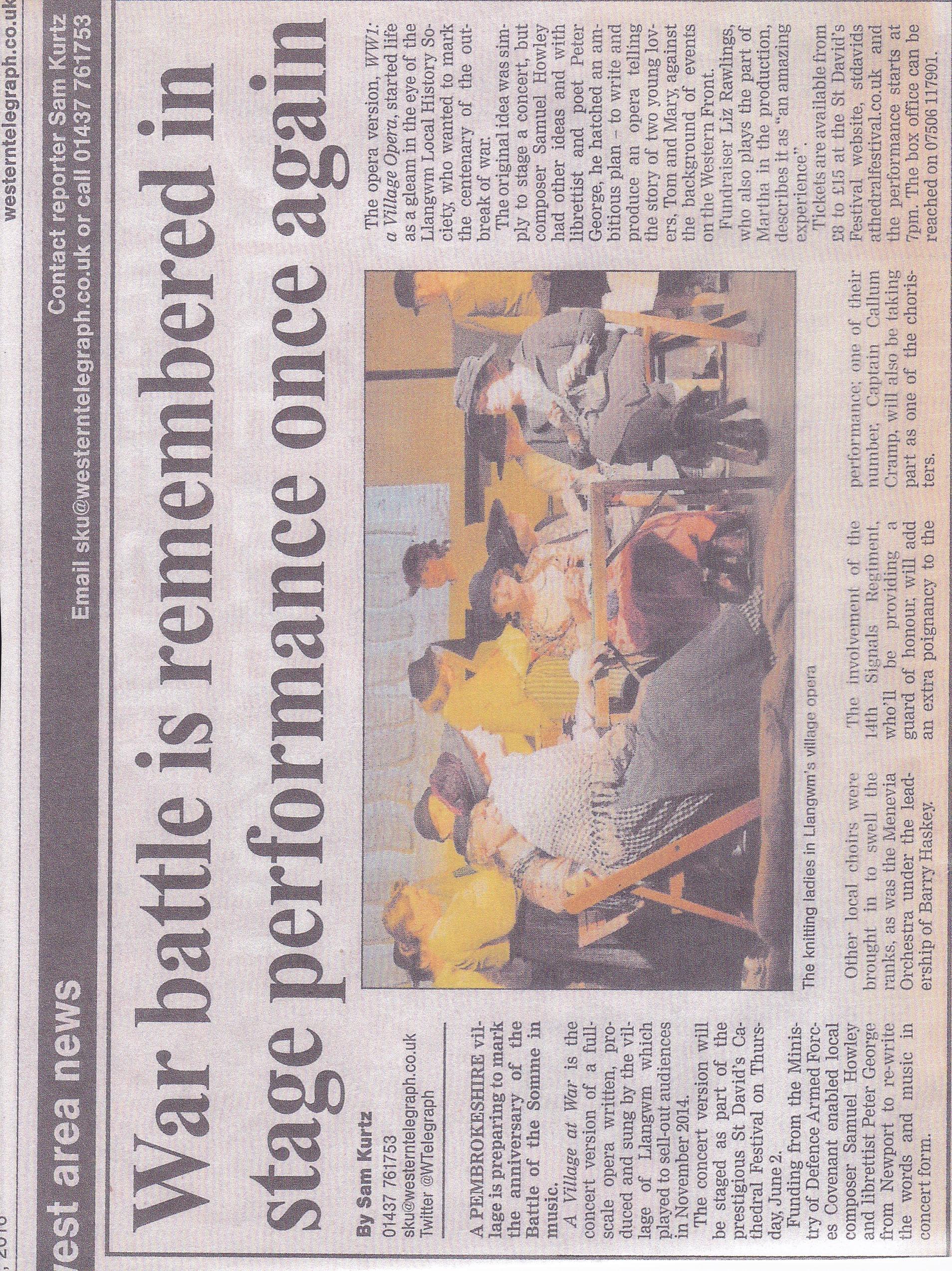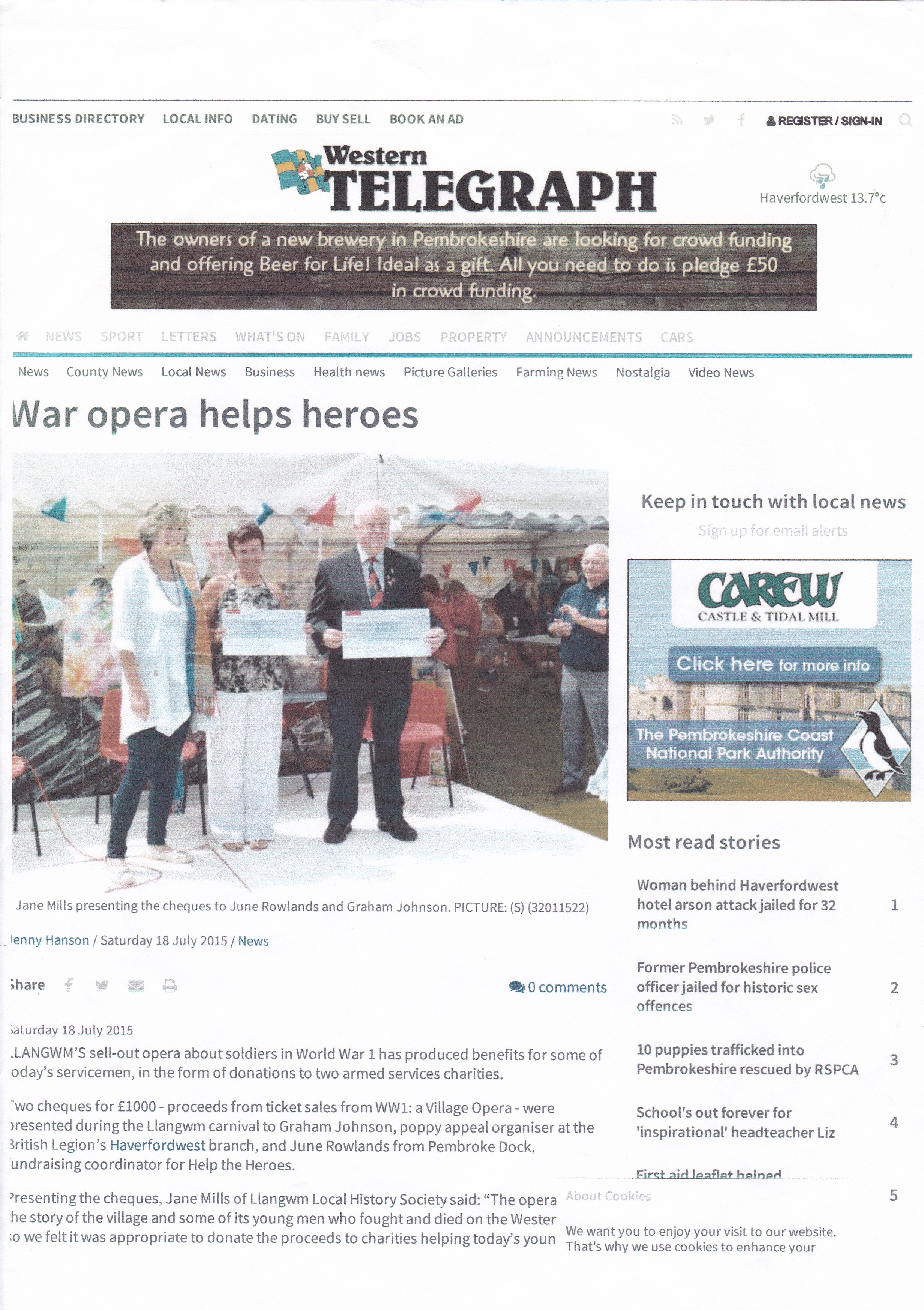 War Opera Helps Heroes - Western Telegraph Website , July 2015