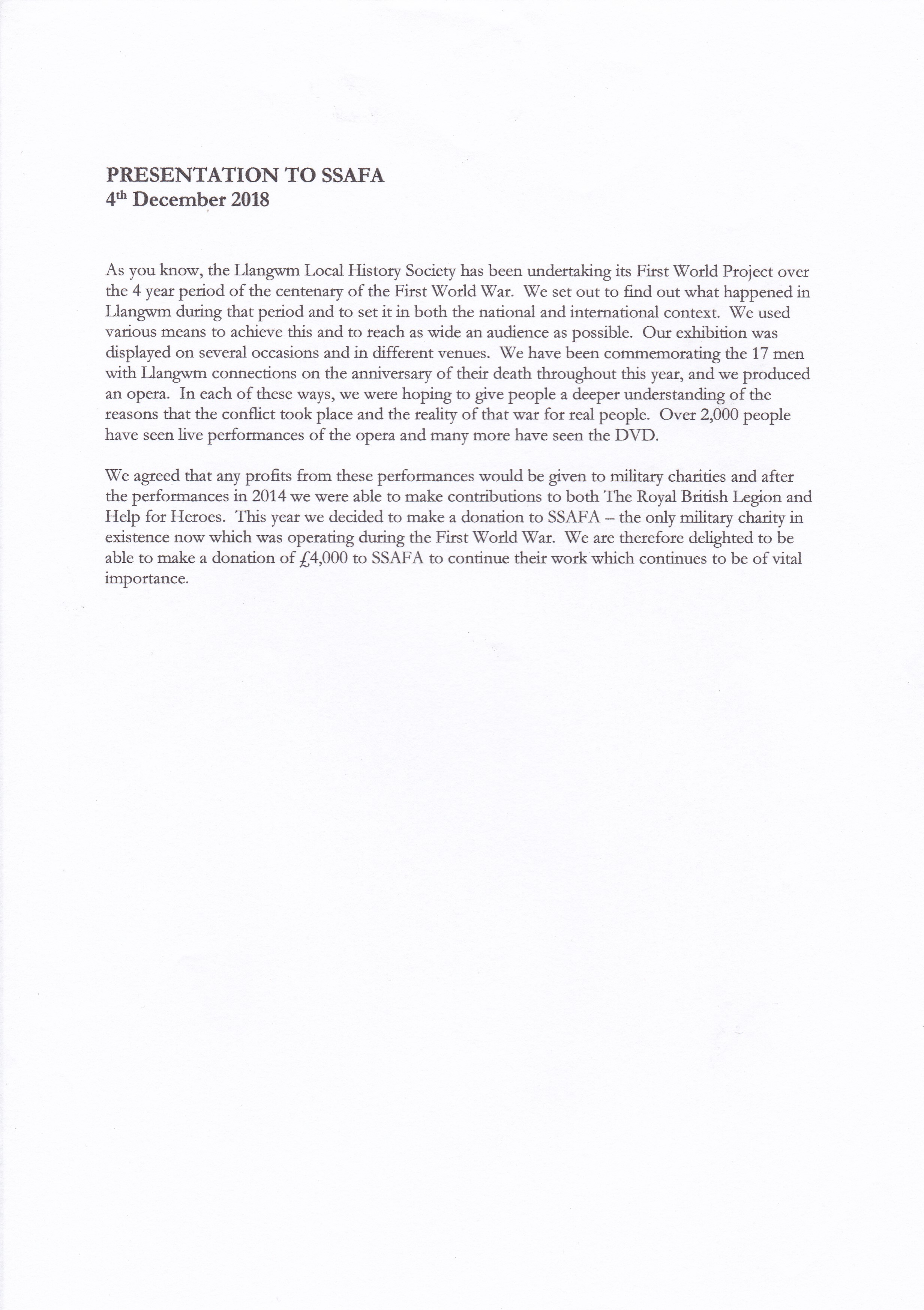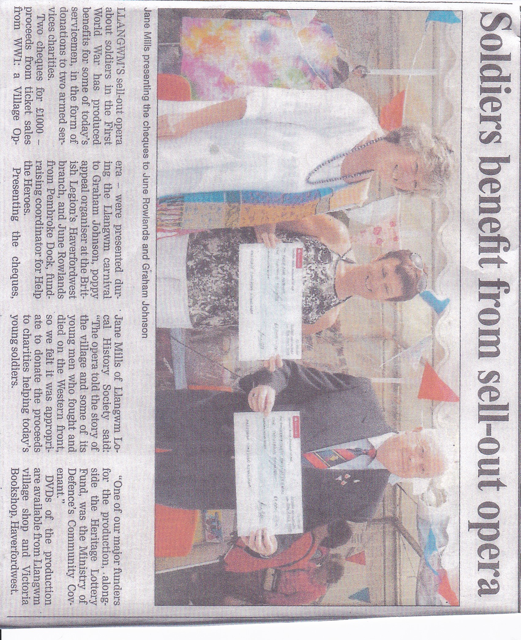 Village opera's donation to veterans - Western Telegraph, 12th December 2018