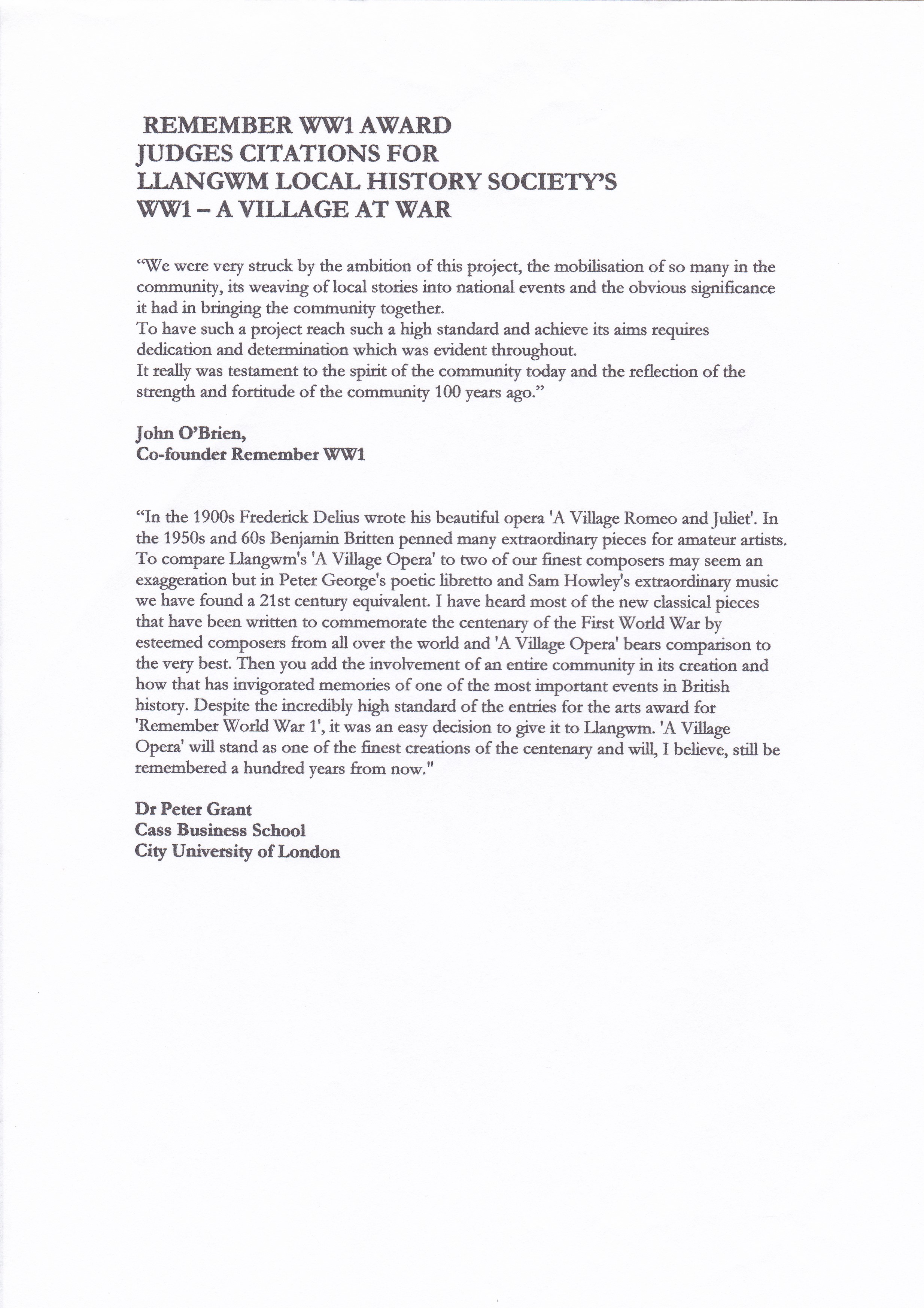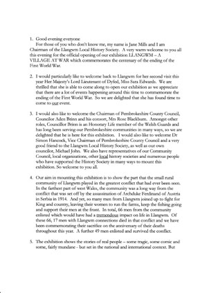 Jane Mills' Introduction - Llangwm: A Village at War Exhibition