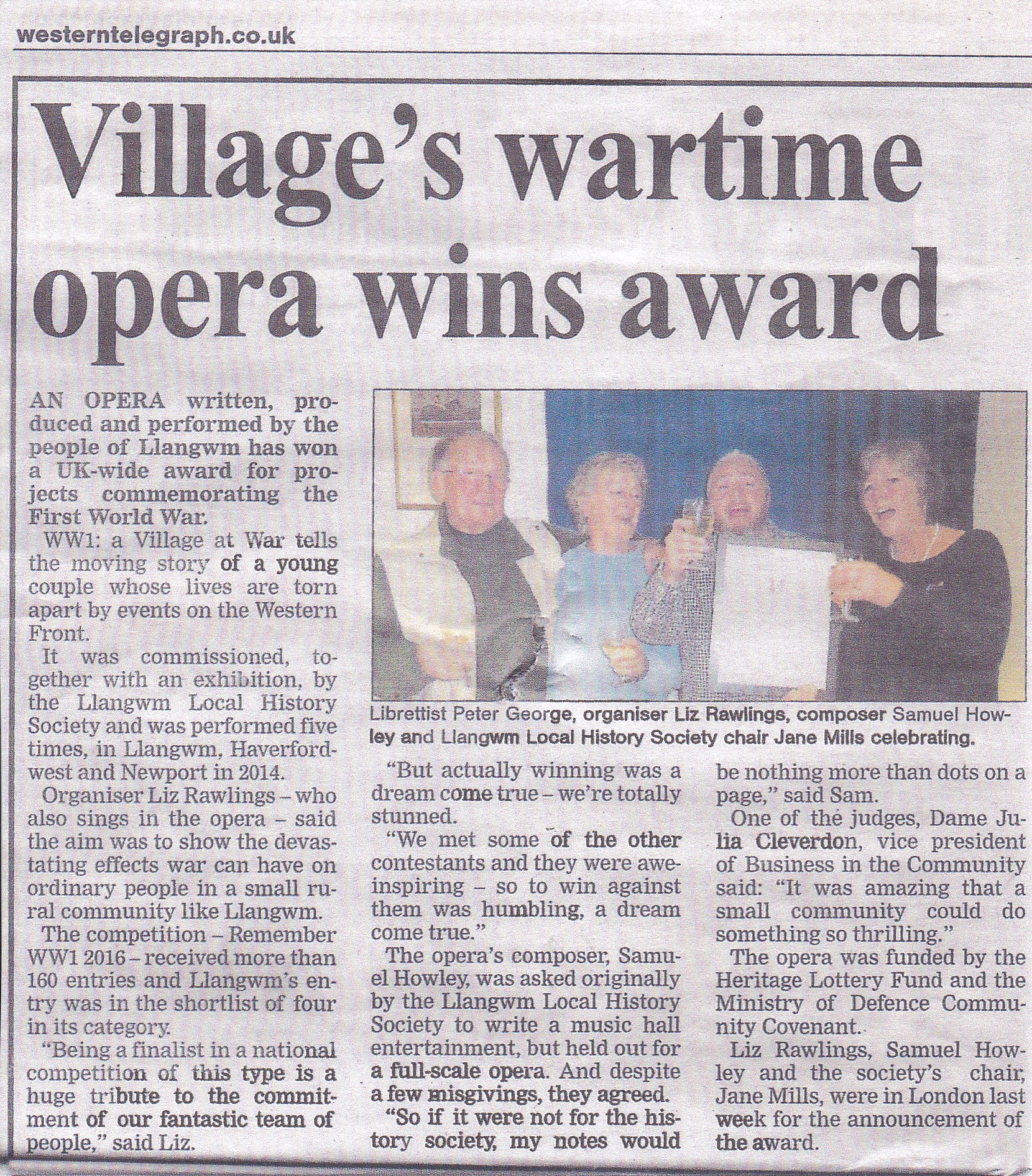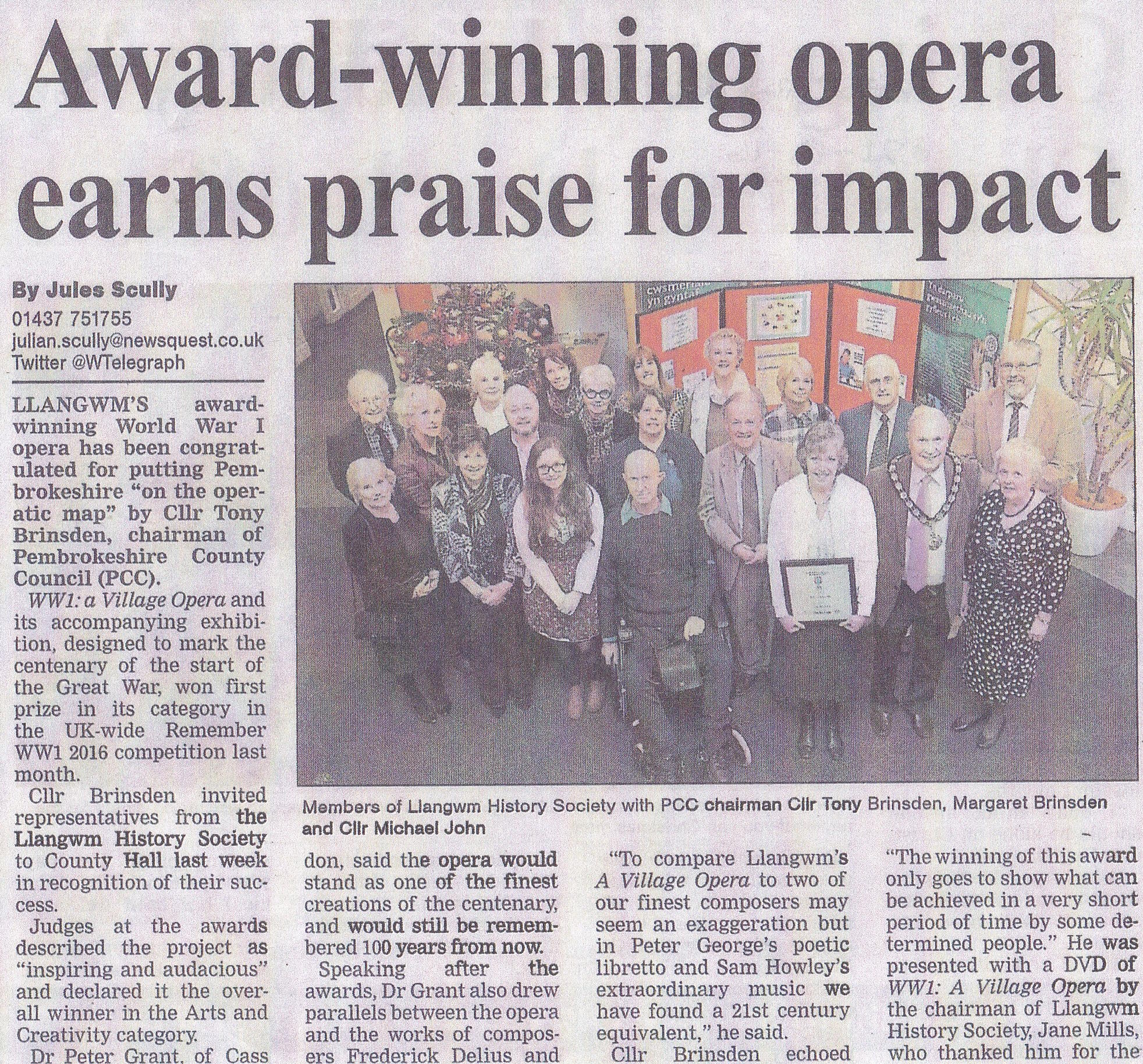 Award-winning Opera Earns Praise for Impact - Western Telegraph, 21st December 2016
