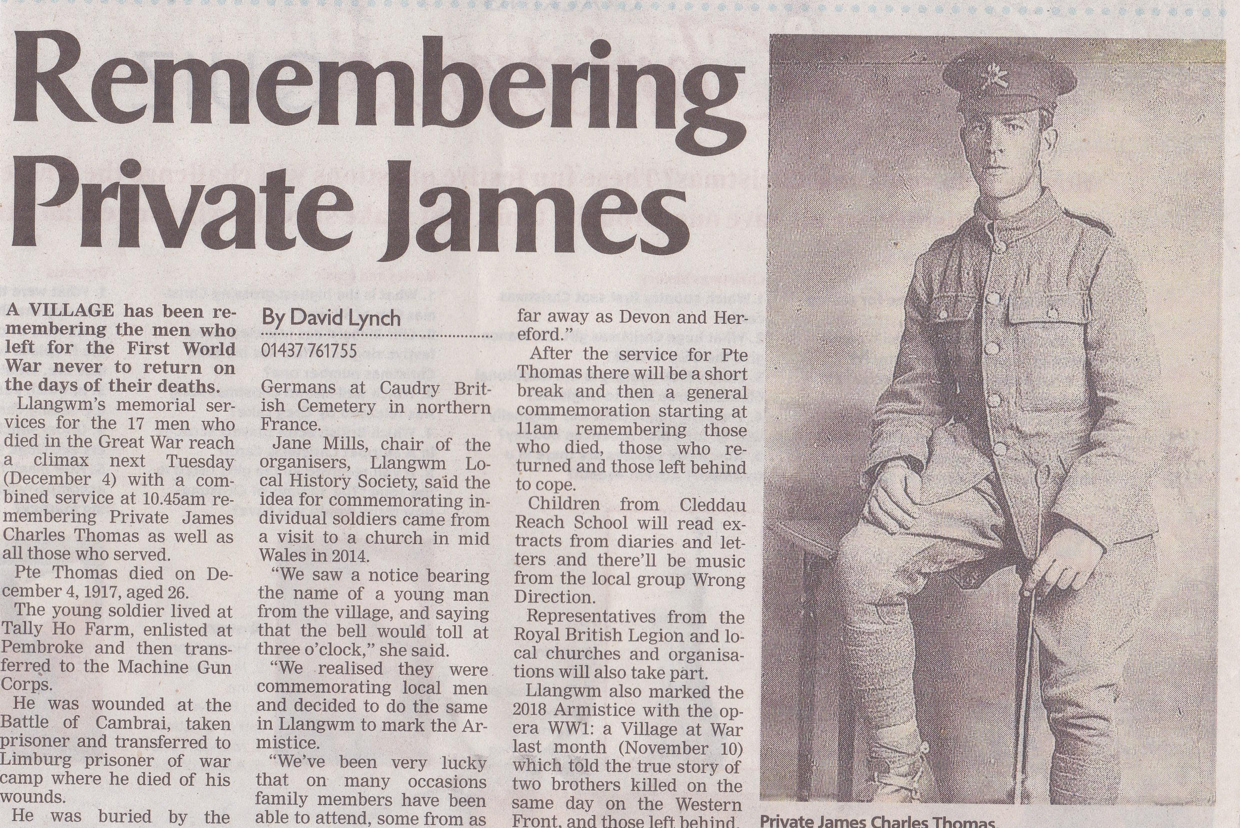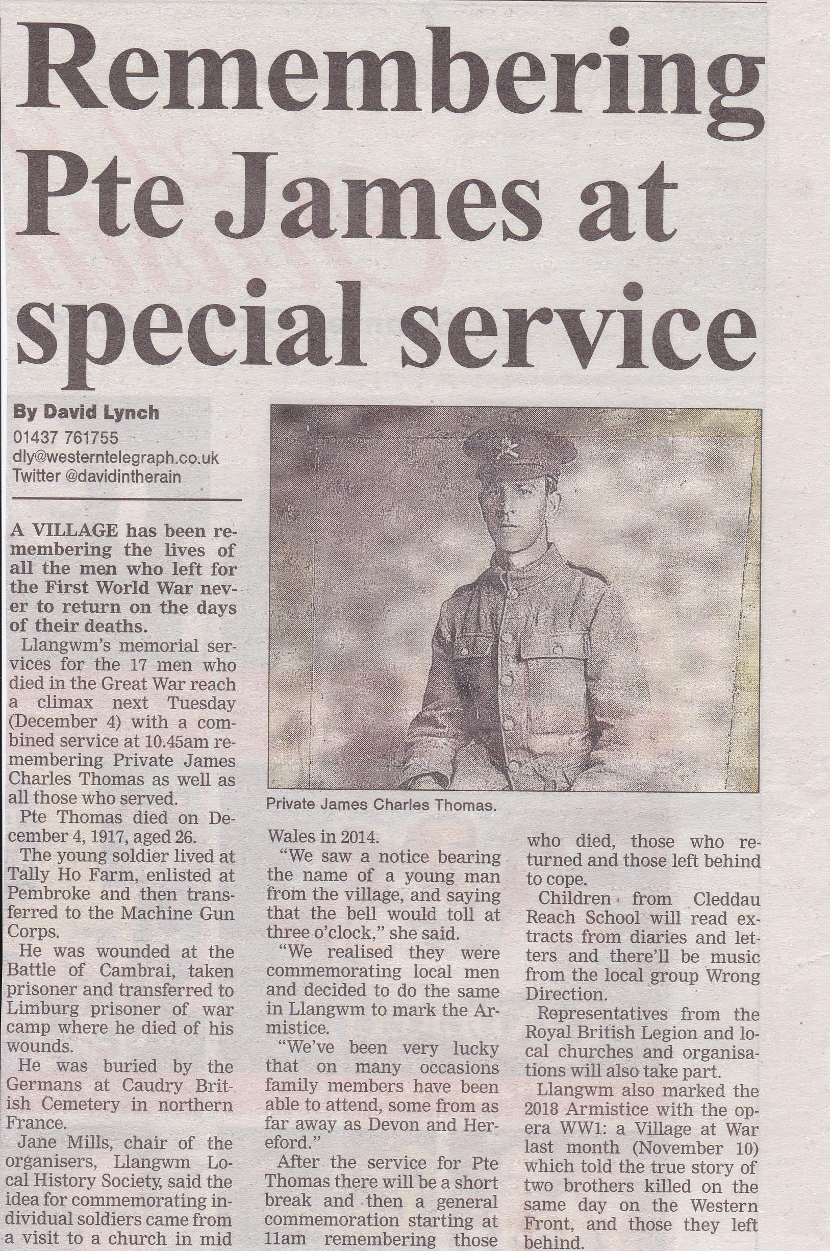 Remembering Pte James at special service - Western Telegraph, 28th November 2018