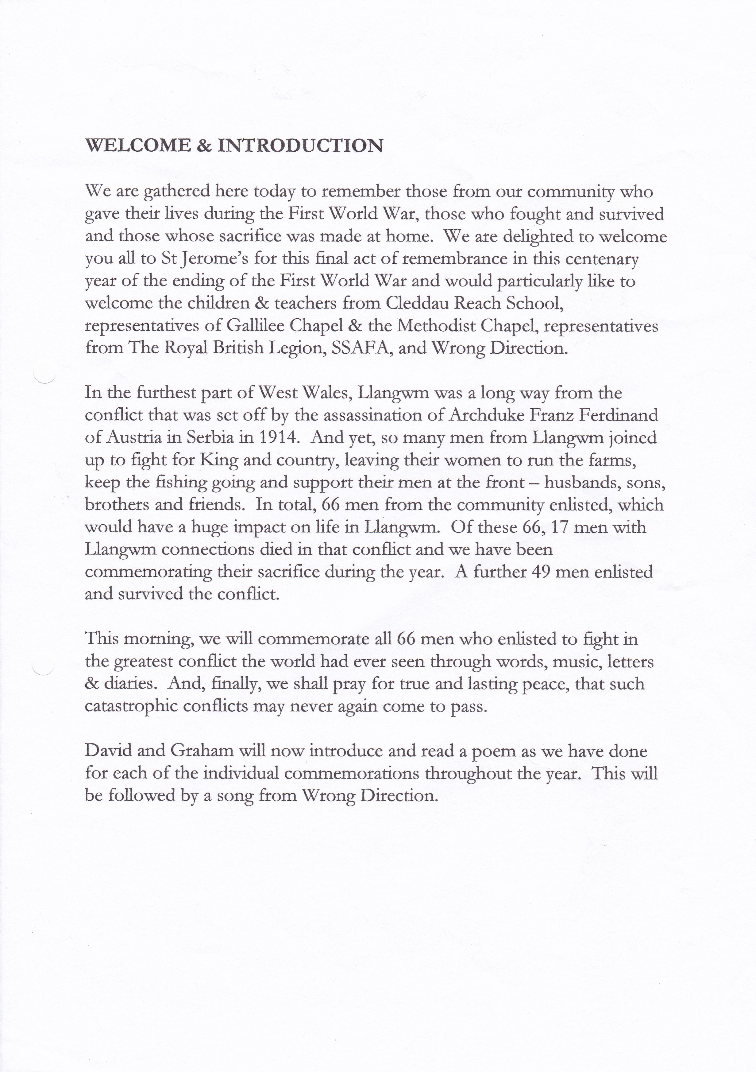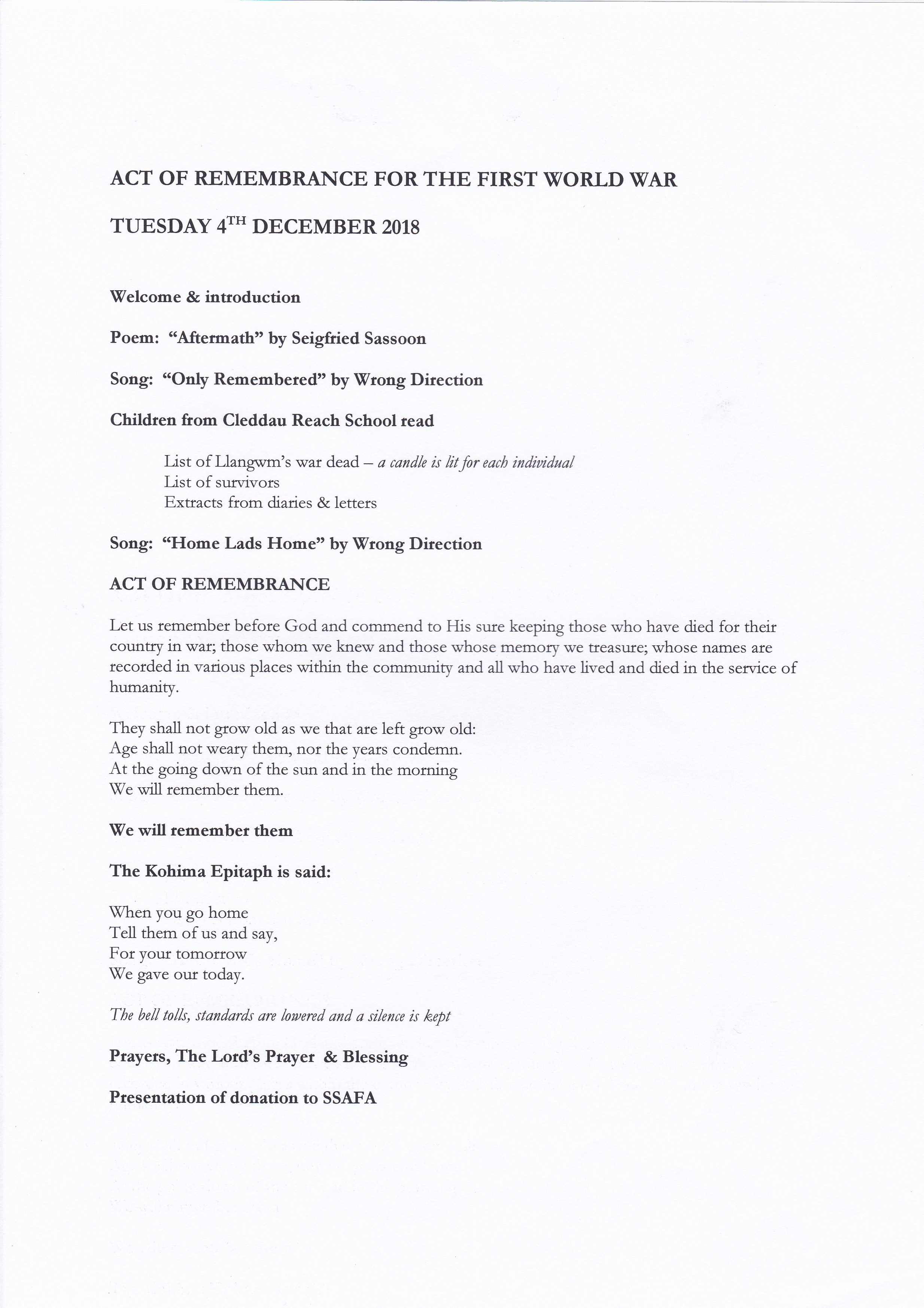 Act of Remembrance for the First World War - Tuesday 4th November 2018 (1)