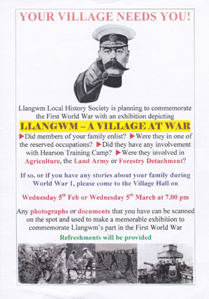 Llangwm: A Village at War Exhibition Poster - November 2014