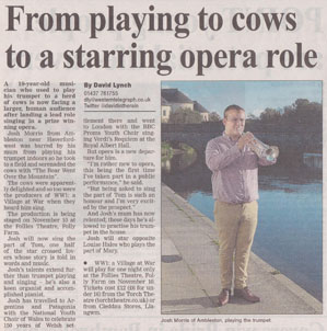From playing to cows to a starring opera role - Western Telegraph, 24th October 2018