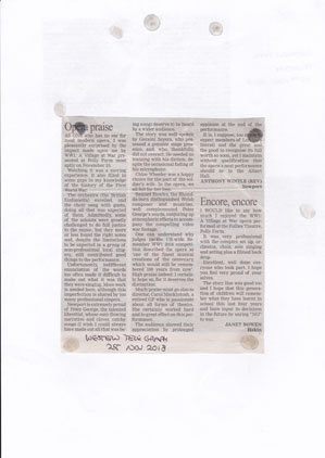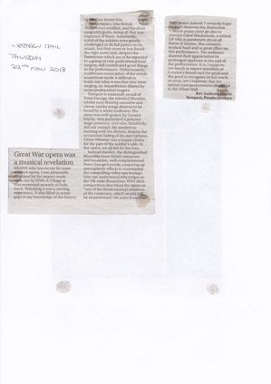 Great War opera was a musical revelation - Western Mail, 22nd November 2018